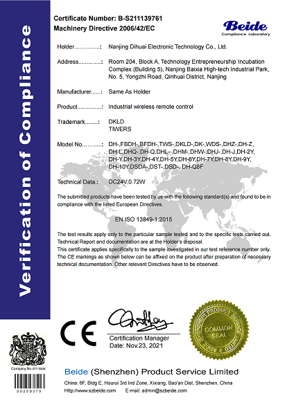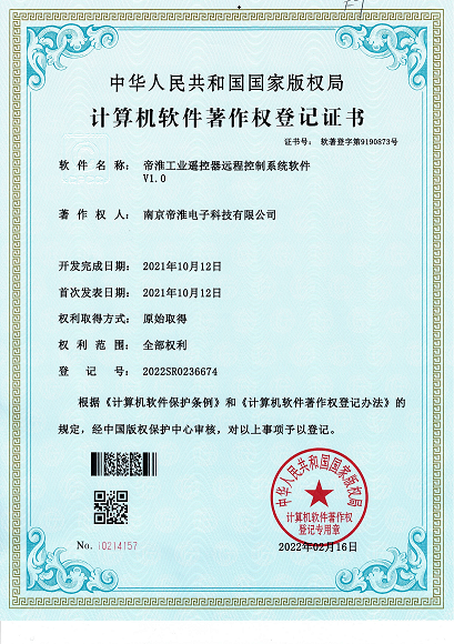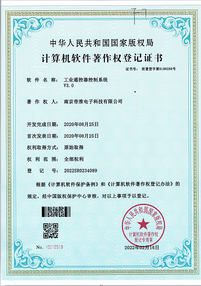 南京帝淮电子科技有限公司,国内工业??仄餍幸盗炀笠?,自主研发、定制、非标设计各类工业级无线遥控器、工业级有线控制器、智能化自主算法逻辑的本地控制器等系列产品。已经申请及正在申请的技术专利、外观专利有近三十项左右,并通过了CE欧盟认证、国家级试验检验报告、EMC电磁兼容认证等。